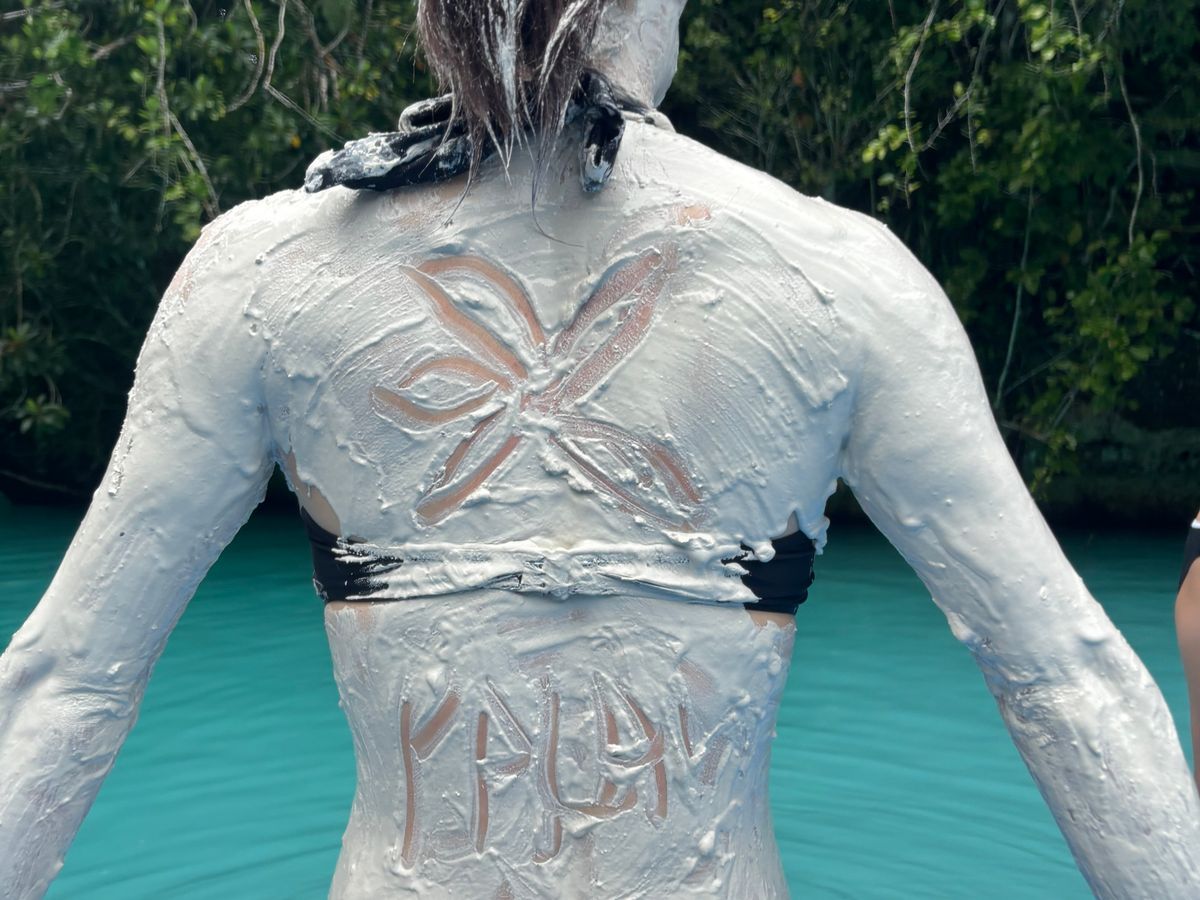 まず行ったのはミルキーウェイ。ガイドさんが泥を取ってきてくれて塗ってから飛び込んで洗い流すと言う流れでした。映える写真をたくさん撮ってもらいました。