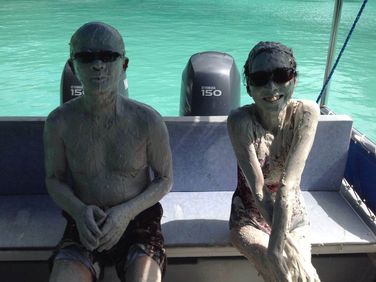 こんなきれいな海、初めて見たー!泥パックも大胆に塗りたくり、