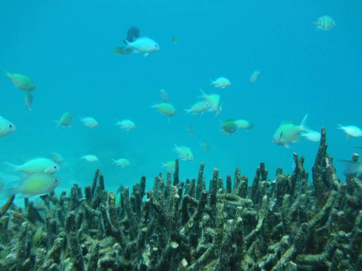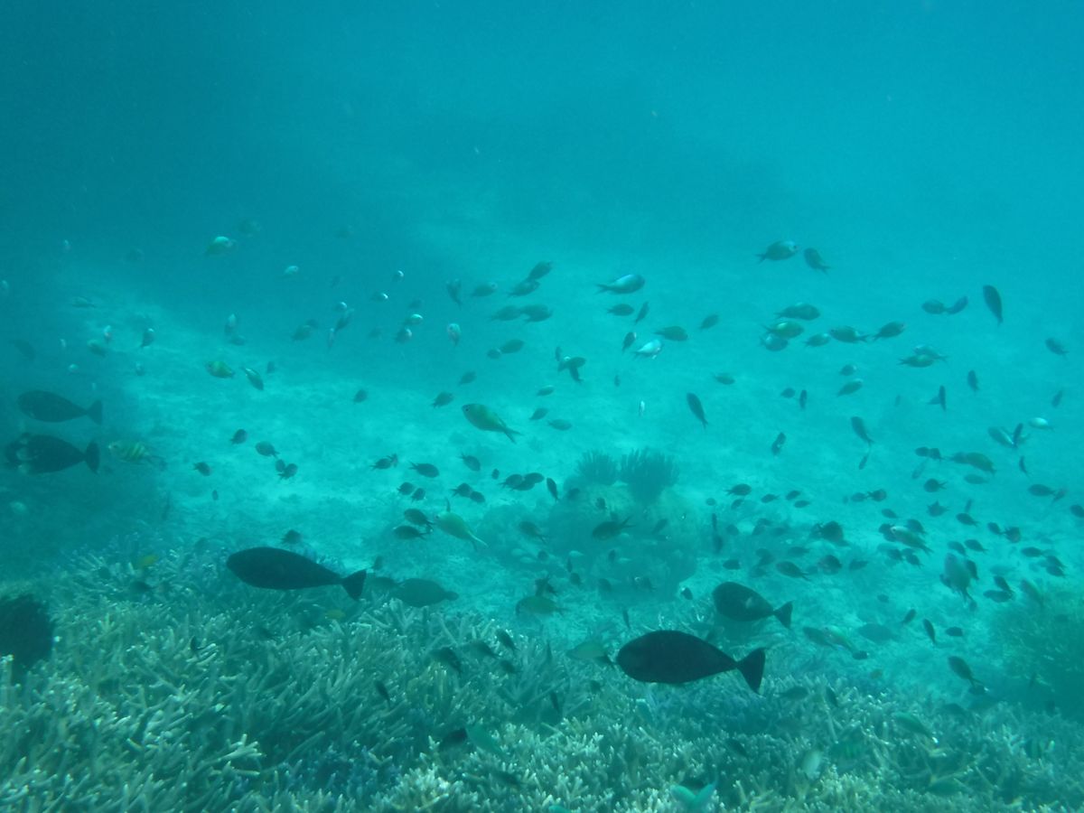 港が近いので、珊瑚は綺麗ではありませんでしたが、魚影は濃かったです。