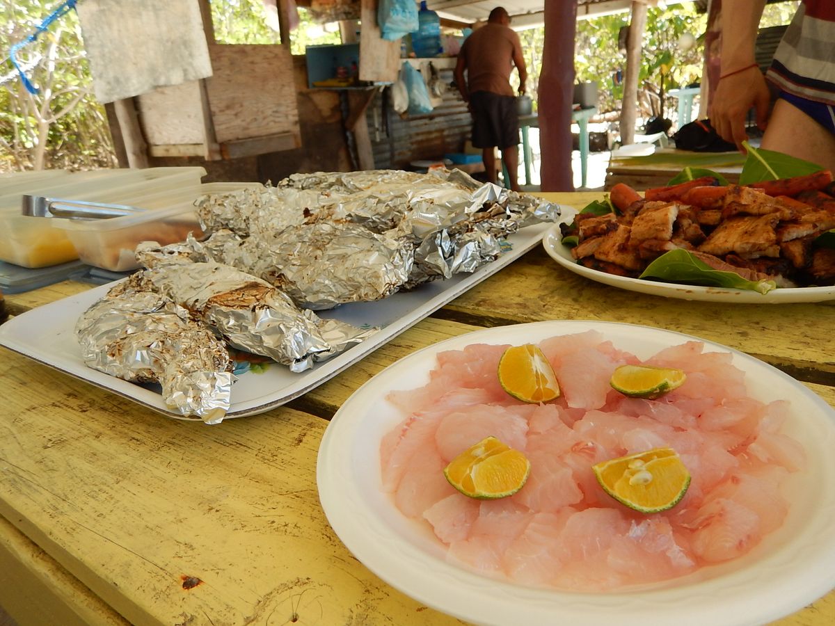 自分たちで釣ったばかりのお魚を、お刺身やホイル焼きで出してくれました。