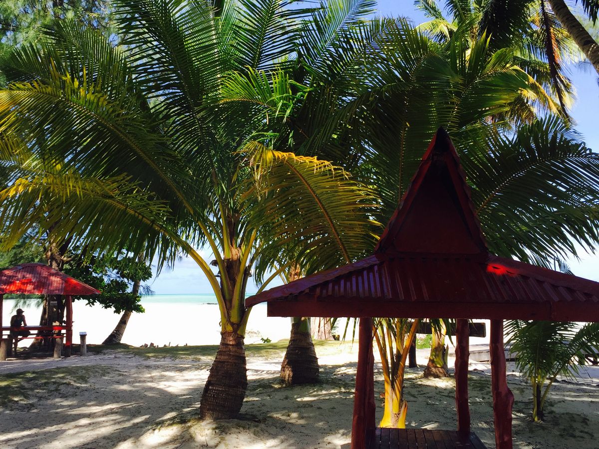 波の音、風の音、椰子の葉の音、鳥の声だけしか聞こえません。