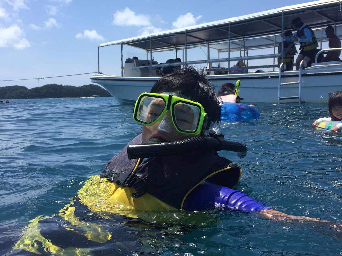 シュノーケルの時もガイドのよしこさんにピッタリとついて行き、初めから最後まで、パラオの海を存分に楽しんでいました。