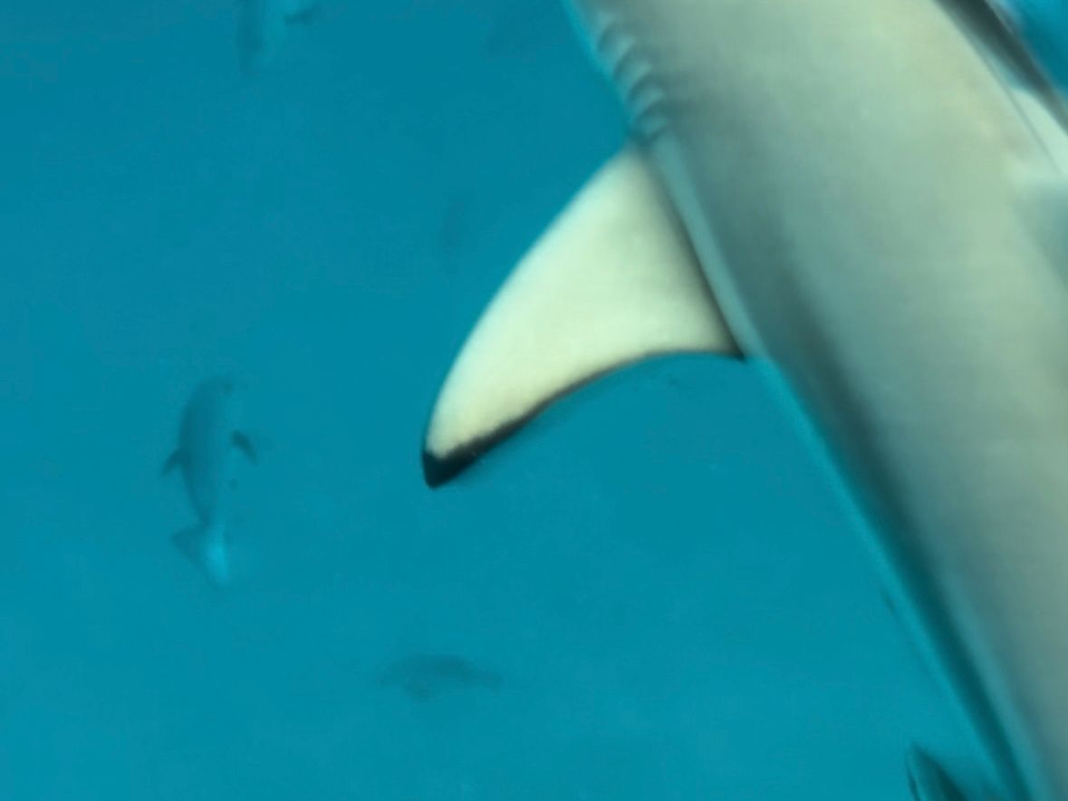 水中を見たら、イワシの大群の切れ目にサメを見つけました。感動!