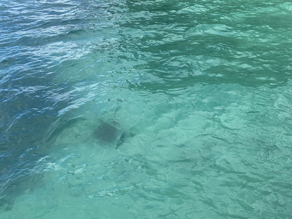 昼食の後、時間があったので泳ぎが苦手な孫と嫁にシュノーケル練習をさせていると石川さんがサメがいますと教えて下さって、