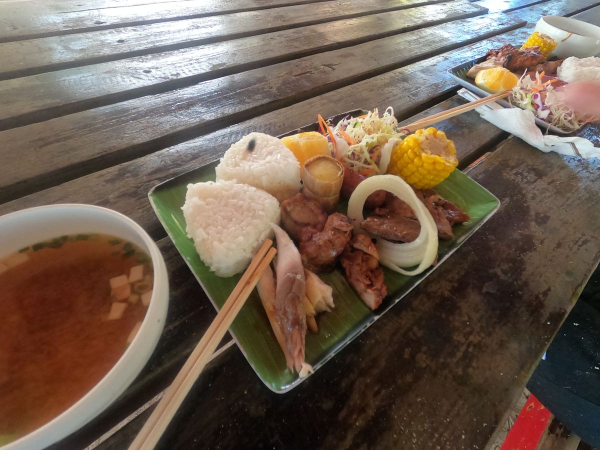 スタッフさんが丁寧に作ってくださった、お肉お魚、お味噌汁を食べた後、ビーチを見ながらハンモックでのんびり贅沢すぎる時間を過ごせます🏝️