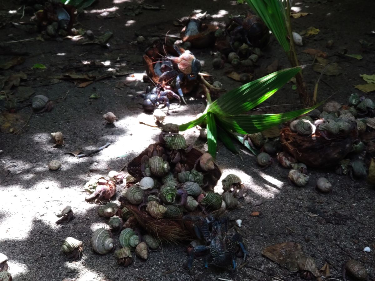 島に行く途中にシュノーケリングしましたが、クラゲの触手のようなものに触れてしまいヒリヒリしました。すこしミミズ腫れのようになりましたが、1時間後にはすっかり治りました。ラッシュガードを着て地肌は出さないほうが良いでしょう。また手釣りもしました。その時別の参加者の方が初めての手釣りで1m以上のクエのような大物を釣り上げ大騒ぎしました。島では弁当プラス釣った魚の刺し身や焼魚をだしてもらい、食べきれない豪華料理でとてもおいしかったです。また島にはヤシガニの大群がいて驚きました。帰りの船は大量の波しぶきをあび、持ち物が濡れてしまいました。防水対策は厳重にしたほうが良いと思います。
