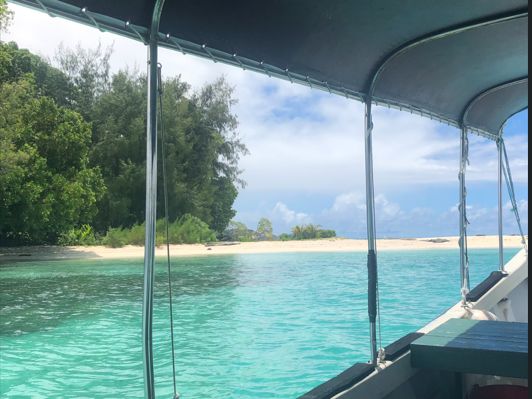 最初はスコールの中から始まり、大丈夫なのかと不安でしたが、結果的に離島に着いた時には晴れていて気持ち良かったです!