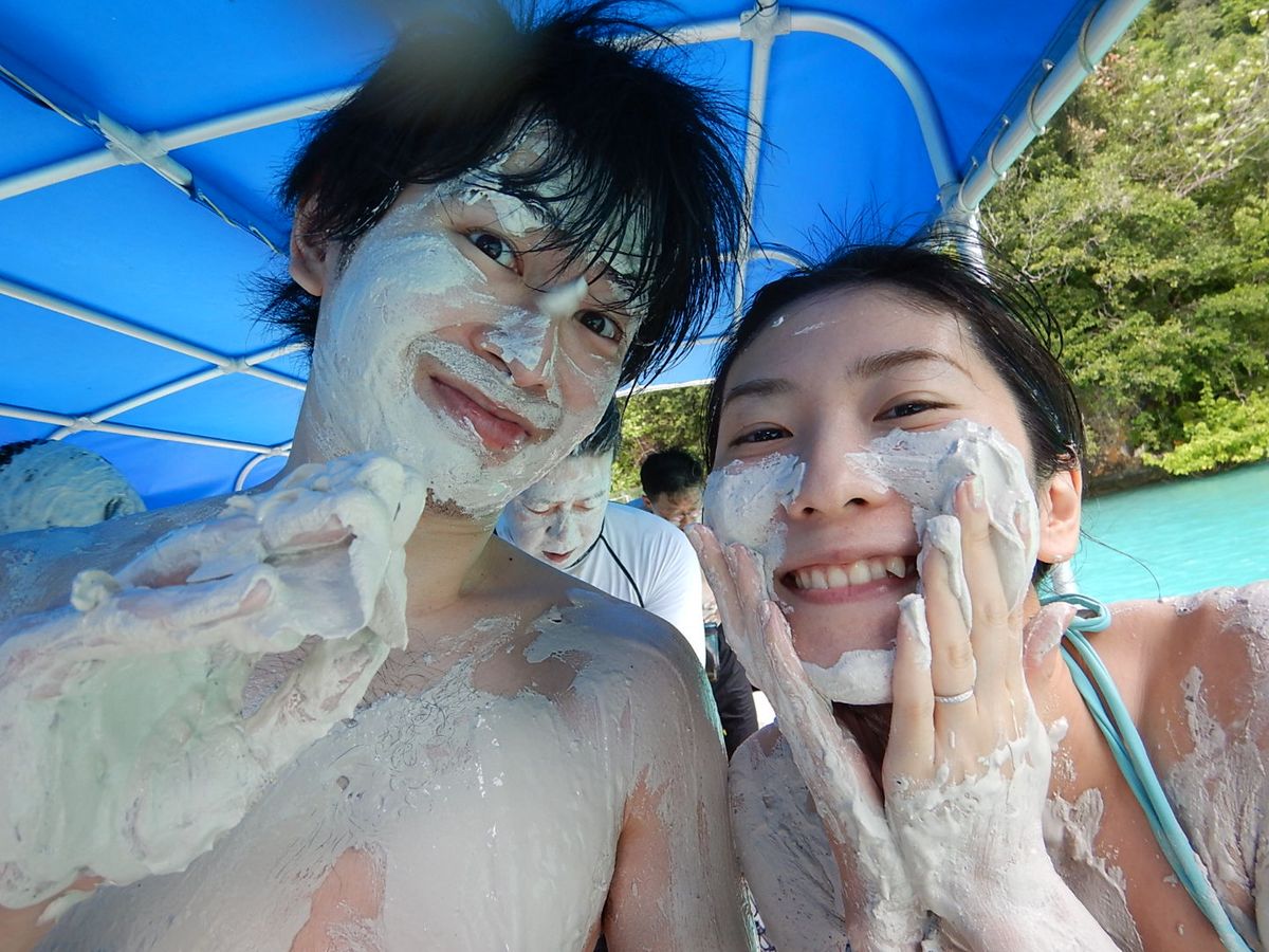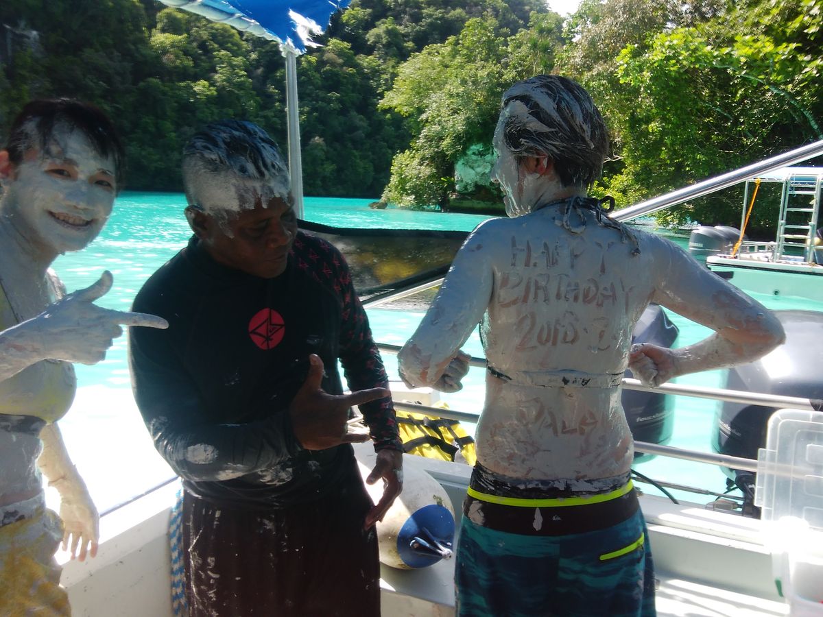 ボートでミルキーウェイまで行き、海底の泥を塗ってから海へダイブ!海の色もとても綺麗でした。