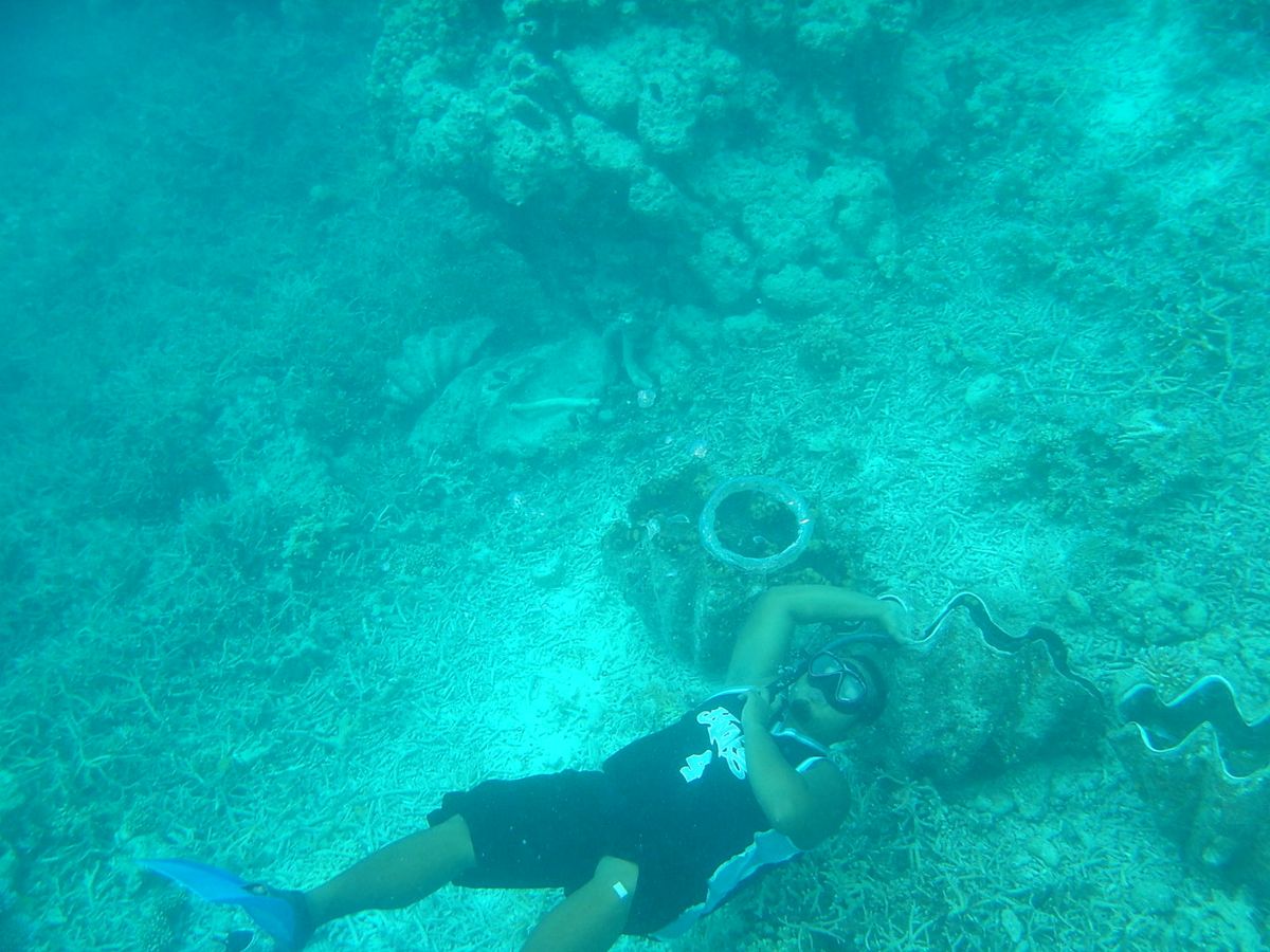 沢山の小さなお魚さんがたくさん!プカプカ浮きながらきれいな海の中のを見れて最高。そしてガイドさんがめちゃくちゃもぐる。シャコ貝に手つっこんだり、きれいな泡のリングを作ったり!