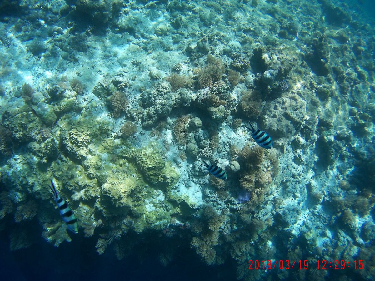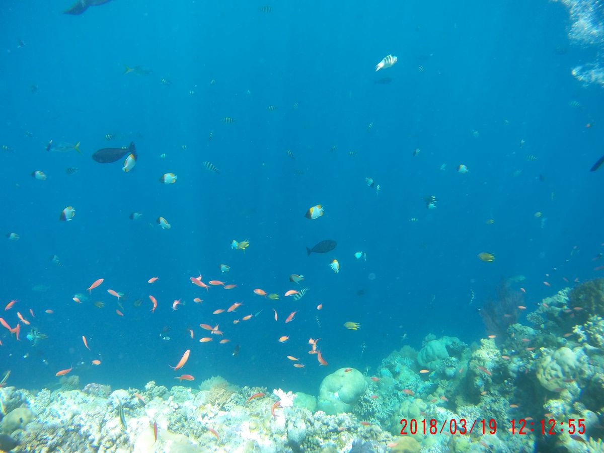 崖のほうは水深がとても深いところがあり、そこには魚が大群で泳いでいるのも見れました。