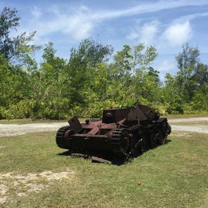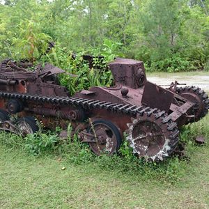 遺棄された日本軍の九五式軽戦車や、米軍の戦車、ゼロ戦の残骸、