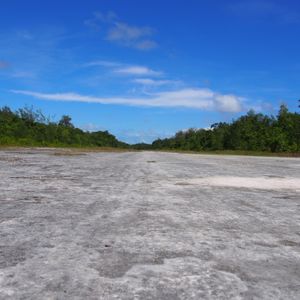 滑走路は荒れているが、先の両陛下の訪問のため、ヘリが離着陸できるように一部だけ舗装されていました。