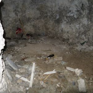 ガラス瓶やくつが散乱していて、ほんとに住んでいたことがわかります。