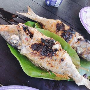 結構な確率でみなさん釣れていました。釣った魚を刺身と焼き魚にしてランチで出してくださいます。