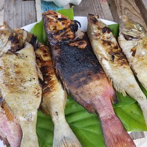 途中で釣った魚もバーベキューで食べれるし、他のおかずも、どれも美味しかった!!今まで一番美味しいツアーのlunchです。