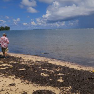 ビーチを歩いているのは、私たちと同じボートの人だけです。