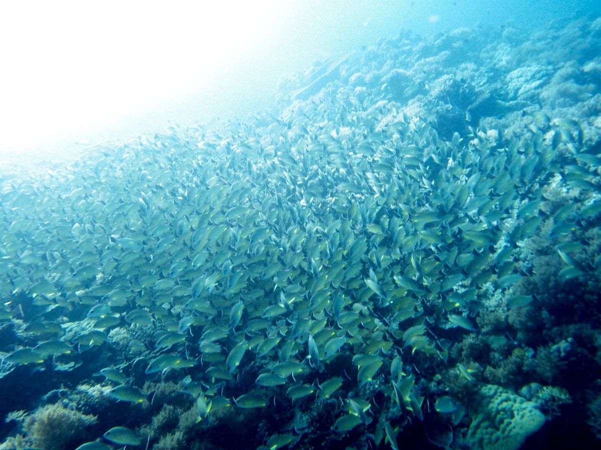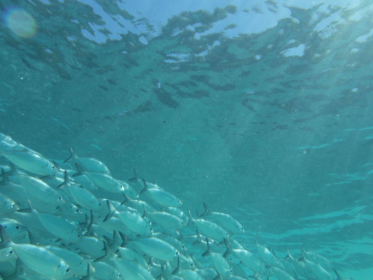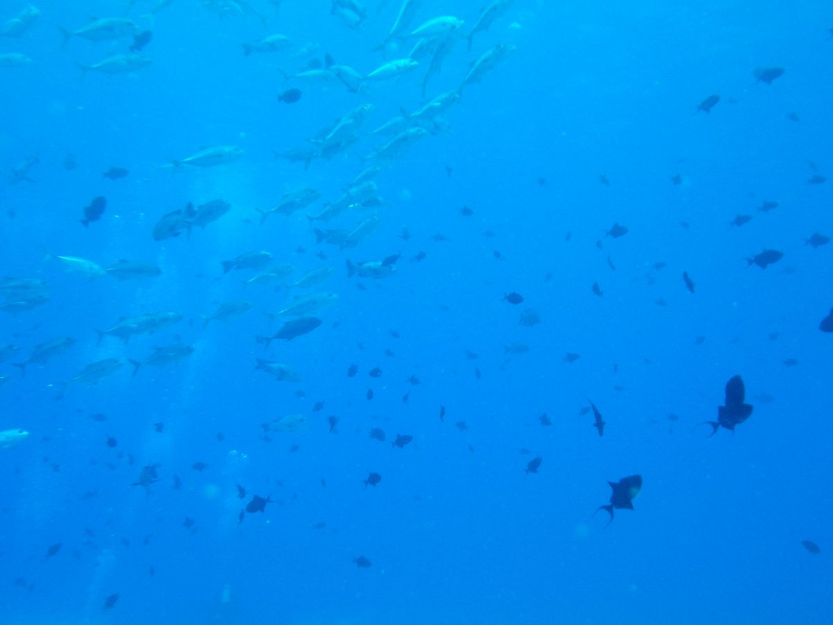 サメや巨大イソマグロ、カマスなどの大物から、様々な魚の群れなど、