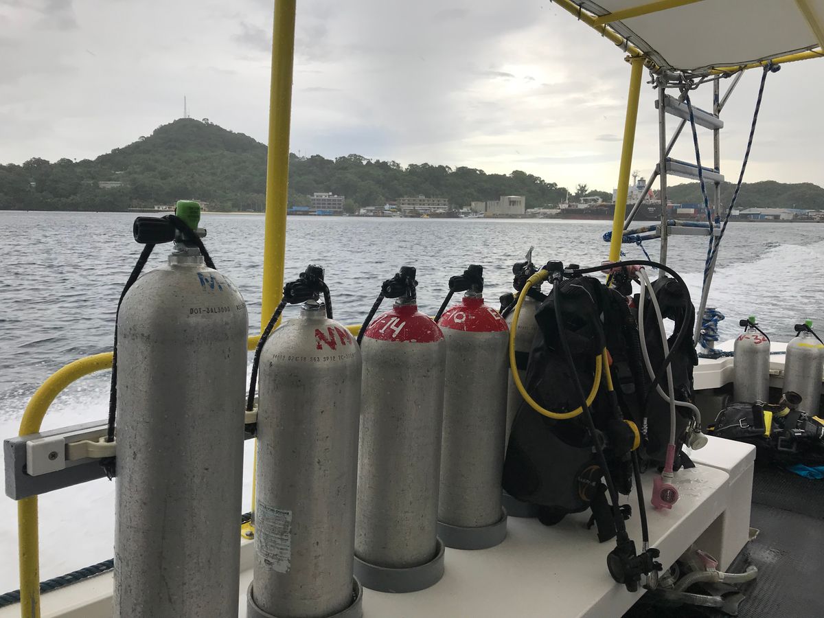 パラオ滞在1日目、初っ端ダイビング!泳ぎが苦手な私ですが、こんなに綺麗な海を生でみないのはもったいないと思いダイビングに挑戦!当日雨予報でしたが、奇跡的に曇り時々晴れ☀️11月は乾季と聞いていたので晴れるかと期待していましたがパラオは年中雨、3日間連続で晴れることは稀だそうです。大好きな相棒と思い出作りをしたかったので天気に恵まれ朝から浮き浮きワクワク♡しかし、お互いダイビングの経験が無く、不安でいっぱい。。ホテルに迎えに来てくれたのは現地の方!奥さんらしい人と可愛らしい赤ちゃんが一緒に乗っていました♡どうやら家族とのこと。ほっこり♡旦那さんがダイビングを教えてくださり、奥さんは帰りの送迎をしてくれました!お子さんを連れて夫婦共に同じ職場で働けて仲睦まじかったです。日本では中々見られない光景でした!