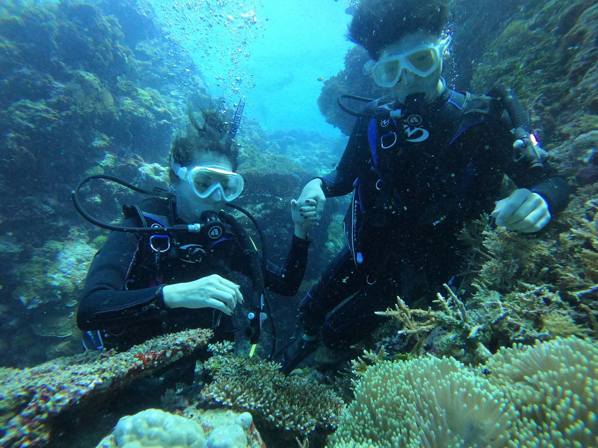 申し込んだ日がたまたま私たち夫婦だけだったので手厚く対応いただけました。初めてのダイビングだったので、機材の説明がなく少し不安でしたが、他の参加者がいない分サポートいただき、初めてのダイビングを味わえました!サンドバーはタイミングが合わずにお昼をそこで食べることが出来ませんでしたが、代わりにSUPをさせていただきました。SUPのツアーは他でも申し込んでいなかったのでラッキーでした!(笑)2本目のダイビングも1本目と違う場所で雰囲気も違い、最高のダイビングが出来ました。その後、サンドバーまで移動して上陸できるタイミングだったのでそこで自分たち以外に誰もいない海を満喫できました。