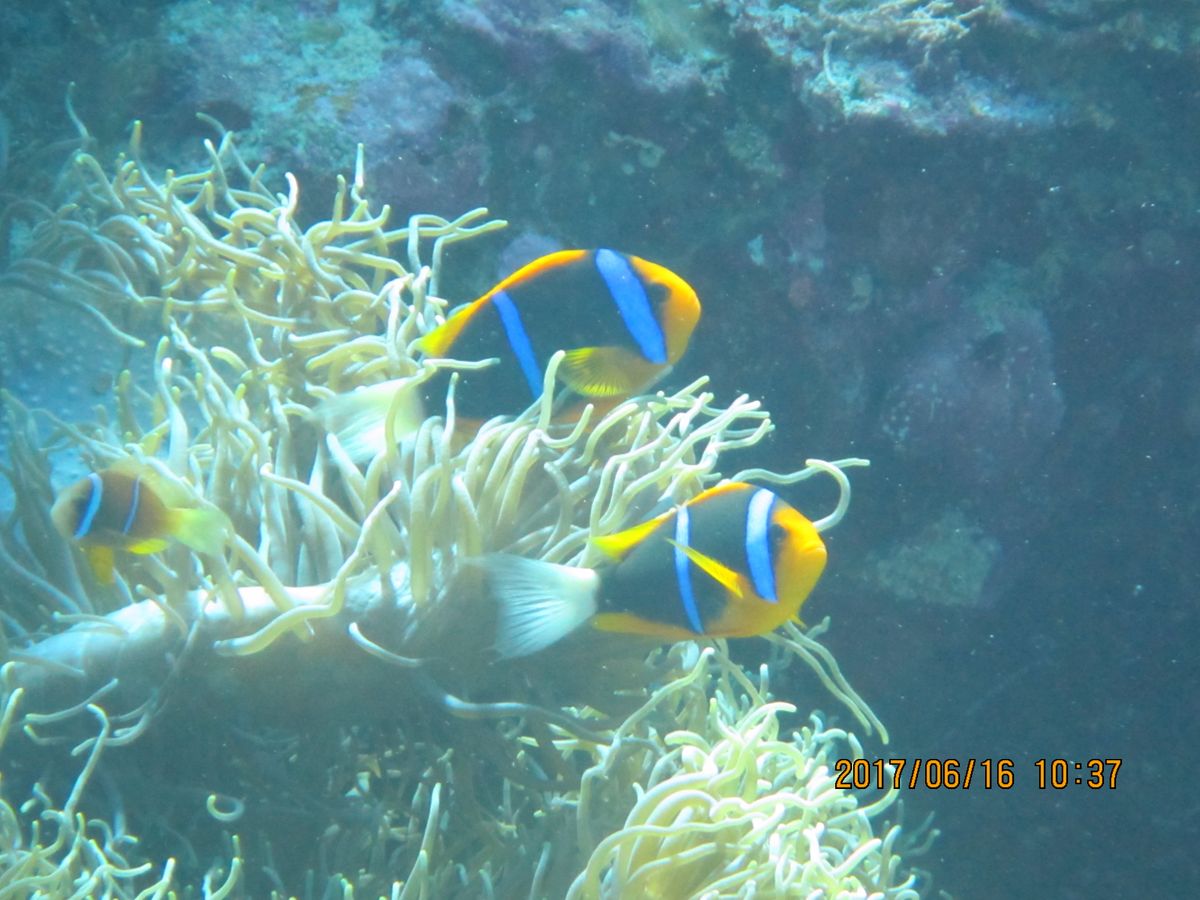 さっきまでの不安が嘘みたいに、海中でウミガメやアジの大群、サメの写真をとったり、チンアナゴを砂地で腹這いになって撮影したり大はしゃぎでした。