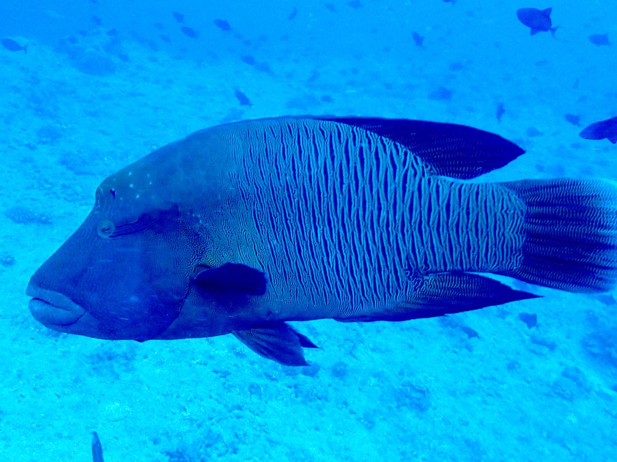 現地のガイドさん、妻、私と順に潜って行ったのですが、案の定不安から息苦しくなってきました。ちょっとパニックになりかけガイドさん、妻に苦しくなってきた事をジェスチャーで合図を送ったところ、現地ガイドさんが近寄って一緒に呼吸法をジェスチャーしてくれ落ち着きを取り戻しました。