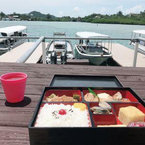 その後、ツアーデスクでおいしいコーヒーとサンドイッチといただき、いざ外洋へ。この日はライセンス持ちの方と同船でしたが、ガイドさんは別々でしっかりサポートしてもらいました。ジャーマンチャンネル1本、ブルーコーナー1本、おかわり(別料金)で再度ブルーコーナーへ。当初、”体験”ダイビングということで、どのくらいのことが出来るかわかりませんでしたが、最深12メートルまで潜れたし、ジャーマンチャネルではマンタが頭上を通るし、ブルーコーナーでは亀や沢山の魚たちと出会うことが出来ました。船の上で食べるベントウも格別でした。