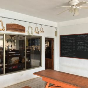 朝6時にピックアップ。同社経営のレストラン敷地の湾内で機材の使い方など丁寧にレクチャーしてもらいました。ちょっと潜っただけでもたくさんのきれいな魚と推定100歳の大きなシャコ貝を見ることが出来ます。