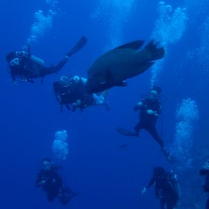 ライセンスを半年前に取ったきりで、初めてのファンダイビングでした。機材の使い方も、正直なところ忘れている状態での参加で大いに不安はありました。加えてガイドさんも日本語ではない、ときては。。。然し乍らすべて杞憂で、大いに楽しめました。まずダイビングでは、サメ、アオウミガメ、ナポレオンフィッシュを目撃。魚群も一匹が大きな(サバくらい?)ものの集まりで迫力満点。地形も変化に富んでおりサンゴや小さな熱帯魚もワンサか見ることができました。現地人のガイドさんも陽気で親切、初心者にも丁寧に教えてくれ本当に楽しむことができました。一人での参加でしたが全く疎外感を味わうこともなく、「あと1日延泊して、潜りたい!」と思ったものでした。
