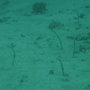 今回は台風の影響もあって透明度は少々よくありませんでしたが、マンタに合うことができてとても感動しました。しばらくじっと見ていると、横でチンアナゴもマンタを見守っていました。
