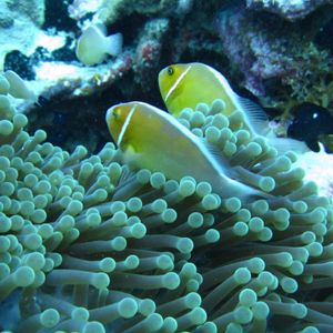 パラオの海は大物だけではなく、ギンガハゼやカニハゼなどかわいい小魚たちにも出会えます。もちろんクマノミやツノダシ、アカモンガラ、ミツボシスズメダイ、カスミチョウチョウウオなどのカラフルな魚たちやちょっと大きめのフグちゃんにも会えますよ。