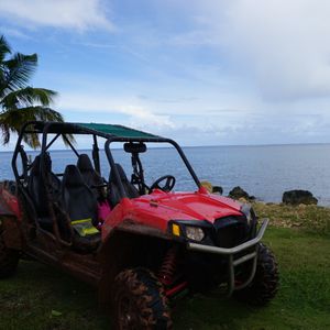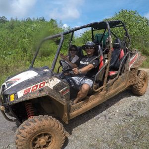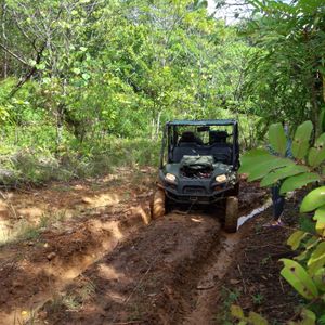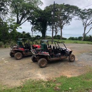 英語ガイドですが、とてもわかりやすく指示してくれるので大丈夫です。基本的に自由に運転させてくれて、脱輪しそうな難しいルートのときは、うしろからハンドル操作をアシストしてくれます。なかなか経験できないようなビチャビチャ泥まみれの道や、すごい傾斜の坂もあって、とてもエキサイティングでした。あと、ランチはいくつかのメニューから選べました。私たちはハンバーガーとサンドイッチを選びましたが、おいしかったです。