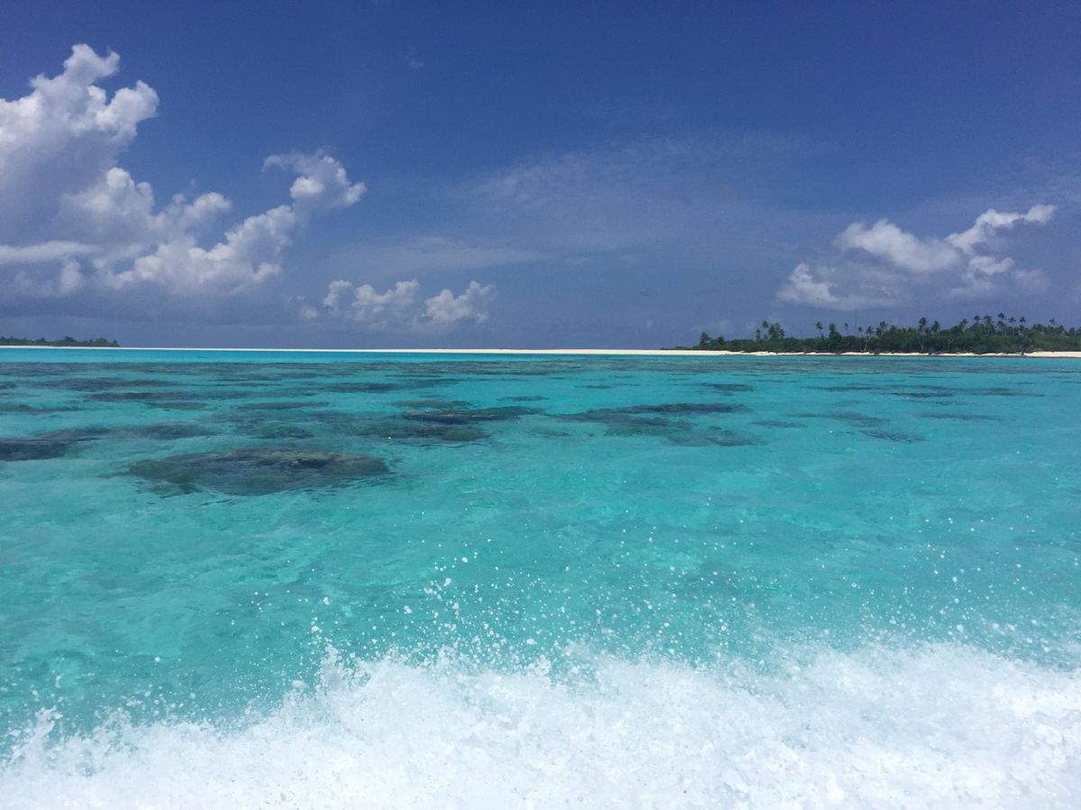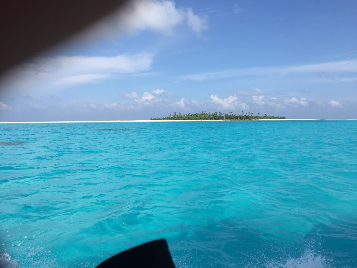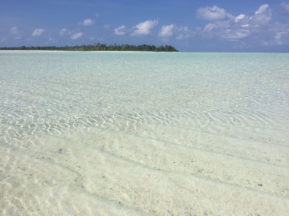 最初は、青サンゴの海でシュノーケル。パラオの南とはまた、違って大きな魚もいました。シュノーケルはこの一回だけ。あとは、ひたすら北に向かう。途中で、お昼に食べる魚を手釣りするも、この日は満月の引き潮にあたるため魚があまり釣れなかった。それでも、船長やスタッフ、ツアー参加者一名がなんとか魚を釣りあげることができた。そこから先がまたかなりけわしい波が1時間くらい続いた。船酔いしてきたと思うころ、やっとカヤンゲル島の隣の無人島に着いた。満月の引き潮なので、超ロングビーチができていた。すばらしい絶景ポイント!ひとしきり遊んでいると、昼食ができて皆で食べる。やはり、釣りたての魚の天ぷらや刺身は美味しい。この味は生涯忘れられない味になった。カヤンゲル島の散策も美味しいバナナをたべたり、フルーツバット、ヤシガニなどを近くで見ることができ観光を味わうことができた。