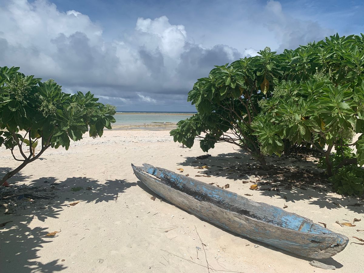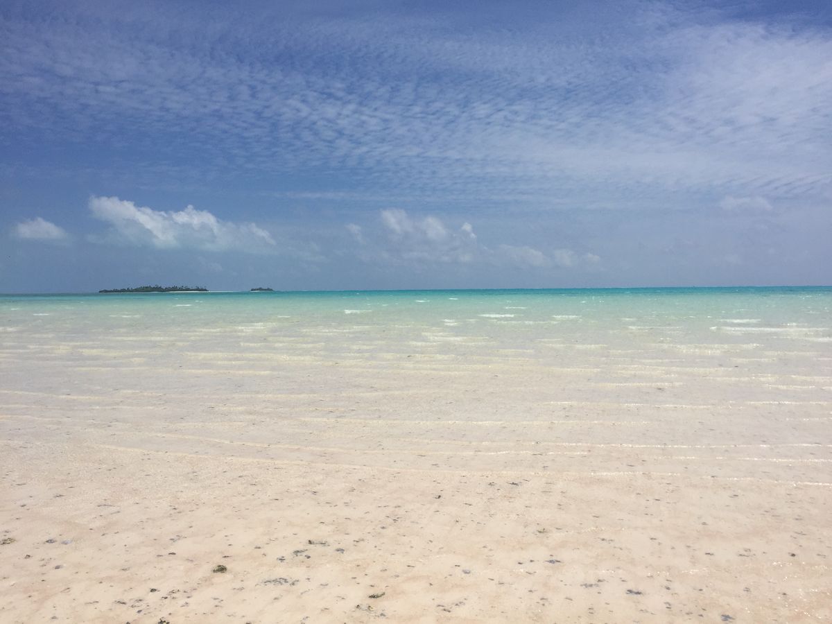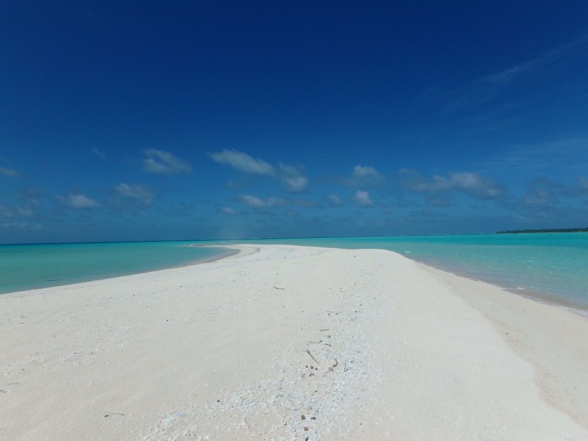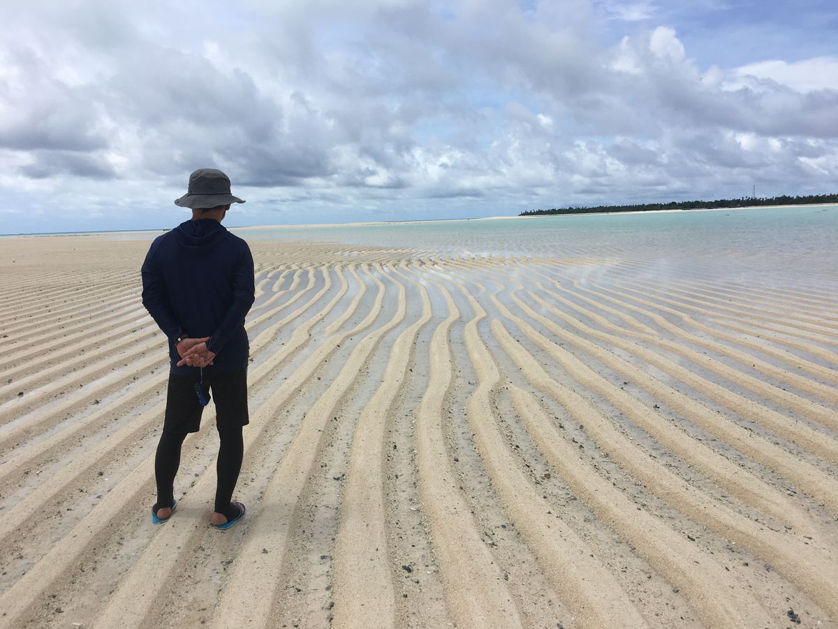 最初は、青サンゴの海でシュノーケル。パラオの南とはまた、違って大きな魚もいました。シュノーケルはこの一回だけ。あとは、ひたすら北に向かう。途中で、お昼に食べる魚を手釣りするも、この日は満月の引き潮にあたるため魚があまり釣れなかった。それでも、船長やスタッフ、ツアー参加者一名がなんとか魚を釣りあげることができた。そこから先がまたかなりけわしい波が1時間くらい続いた。船酔いしてきたと思うころ、やっとカヤンゲル島の隣の無人島に着いた。満月の引き潮なので、超ロングビーチができていた。すばらしい絶景ポイント!ひとしきり遊んでいると、昼食ができて皆で食べる。やはり、釣りたての魚の天ぷらや刺身は美味しい。この味は生涯忘れられない味になった。カヤンゲル島の散策も美味しいバナナをたべたり、フルーツバット、ヤシガニなどを近くで見ることができ観光を味わうことができた。