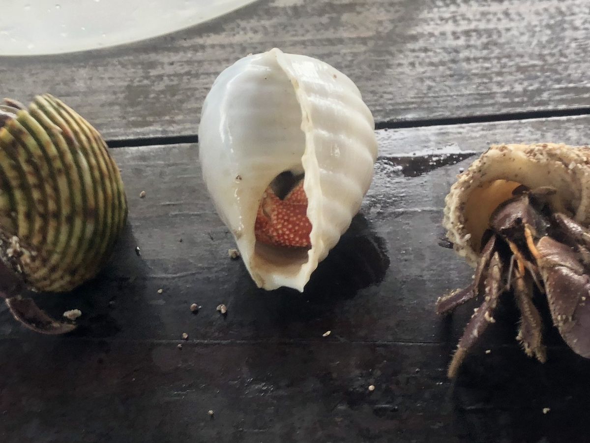 後、ランチの魚を焼く小屋の奥を是非覗いてみて下さい‼︎大量のヤドカリとヤシガニに会えます!