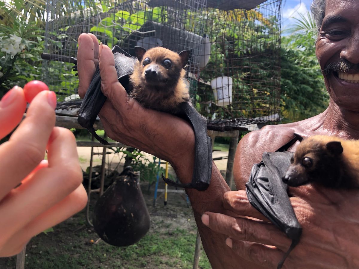 最後には現地のココナツジュースやバナナをいただき、さらに地元の人が飼っているコウモリを見学することもでき、自然と文化の両方を満喫できる忘れられない一日となりました。