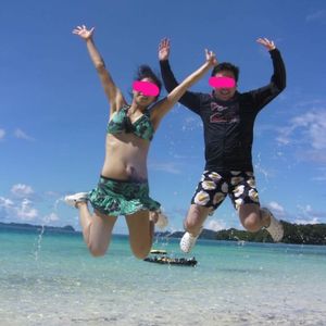 前日まであまりきれいに見れなかったというロングビーチに一番初めに到着。海の透明度とオジサン島まで続く白い砂浜に大感動☆