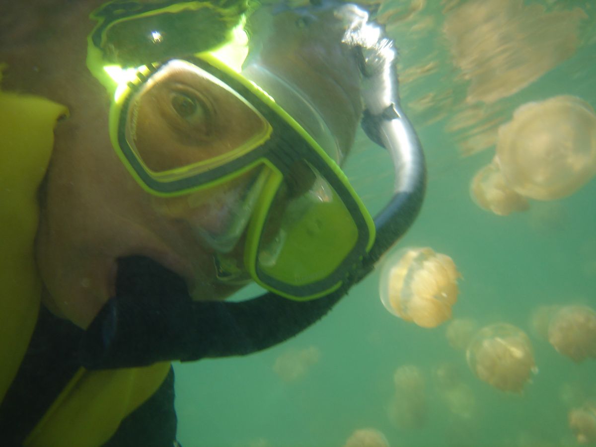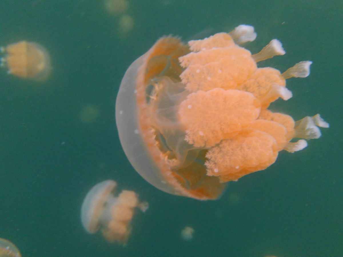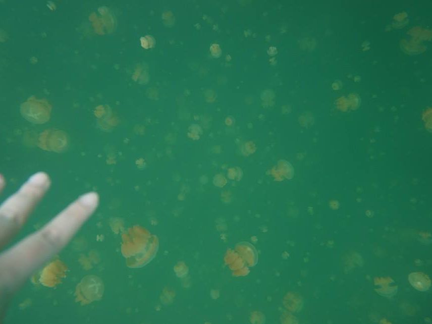 ジェリーフィッシュレイクまではけっこう歩いた記憶ですが、でもほんとにクラゲさんがたくさんいて、絶対日本ではできない経験だし、幻想的な写真がたくさん撮れて満足です。