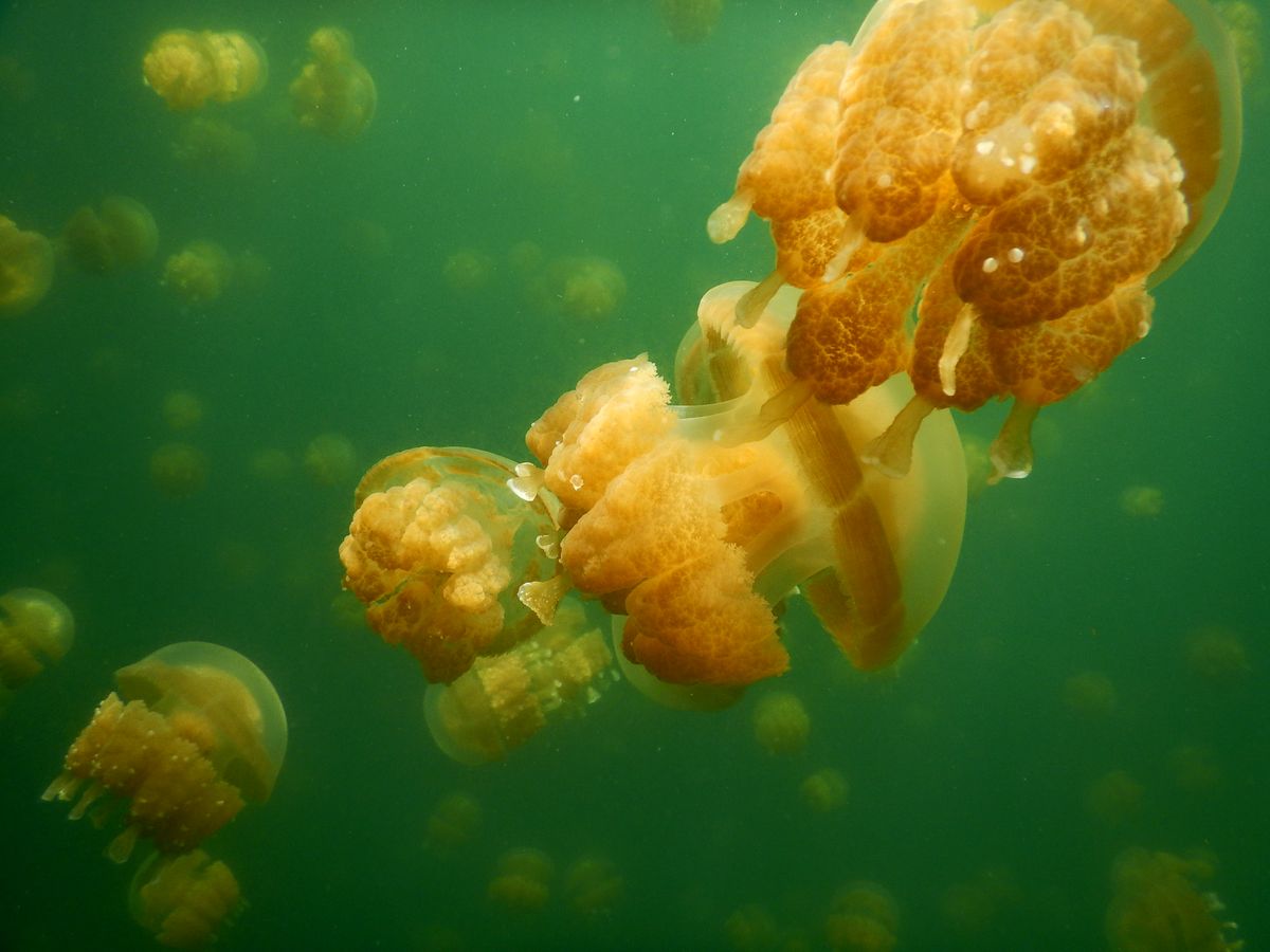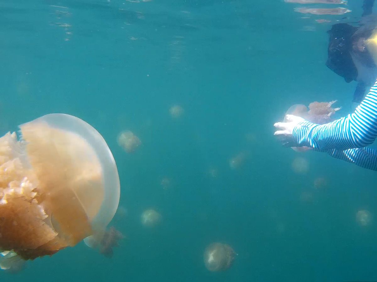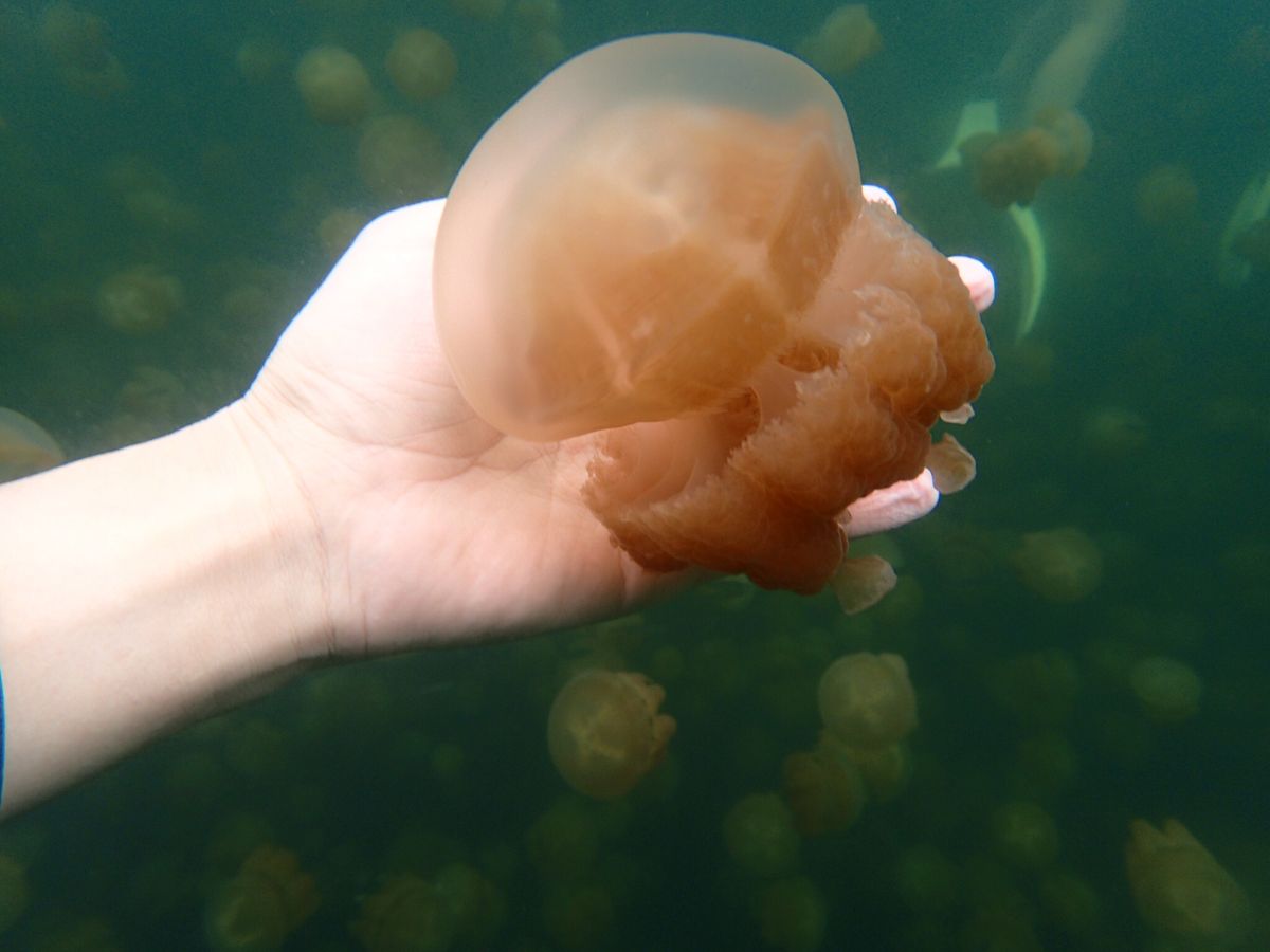 ジェリーフィッシュレイクでは何百とのクラゲを見たり触ったり。