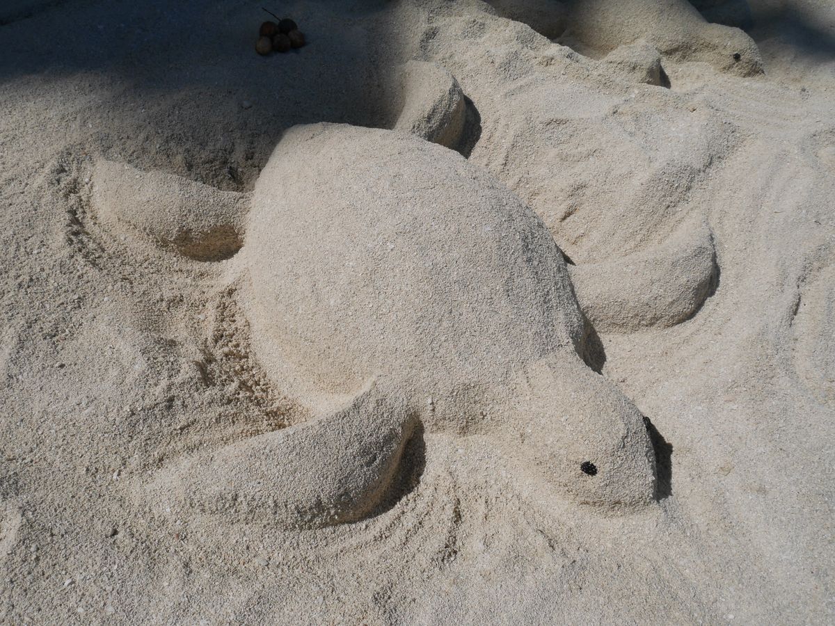 ガイドのアンディさん、砂で海亀を作ってフォトスポットにしてくださいました(*゜゜*)とても可愛くて感動しました。