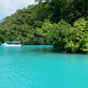 パラオのロックアイランドには、地中深くで海とつながるマリンレイクがいくつも存在しています。ジェリーフィッシュレイクはそんなマリンレイクのひとつ。海水と淡水が混ざった静かな湖には、無数のタコクラゲたちが生息しています。外的のいない環境で太陽を浴びて光合成をする不思議なクラゲは毒をもたず、触っても刺されないことが特徴のひとつ。環境の変化で一度いなくなってしまいましたが、最近になり彼らが戻ってきて、現在ではジェリーフィッシュレイクツアーも再開されるようになりました。湖を泳げば四方八方がクラゲだらけ。幻想的な雰囲気の漂うこの湖は、世界中の人々を魅了するパラオの有数のシュノーケリングスポットです。 【ここがおすすめ】 ・世界で唯一!光合成をする不思議な毒なしジェリーフィッシュに囲まれます。 ・服装は水着と短パン、サンダル、Tシャツ等の軽装でOK! ・傷つきやすいタコクラゲたち。シュノーケリングでもそっと泳ぎましょう。