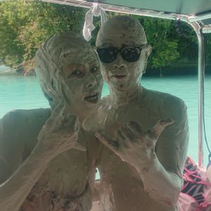 ツアーのご案内は日本人のスタッフの方でしたが、ツアーにお供して頂いたのは現地の方でした。日本語が通じるのか不安でしたが 全く問題がなく船は出発。最初に到着したのは 泥パック。スタッフの方が泥を海底から持ってきてくれ 全身に塗りまくり 写真タイム。