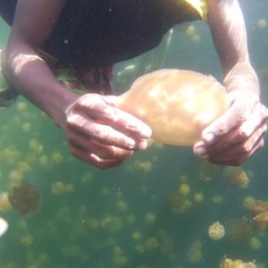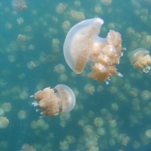 ジェリーフィッシュレイクは船着き場からフィンを背負って過酷な階段を上がり下ります。ジェリーフィッシュがいるところまでも自力で泳ぎ、かなり体力を要しますがジェリーフィッシュの群れに囲まれたときはそのしんどさも吹っ飛びました。ここにしかいない生き物を見ることができて感激です。