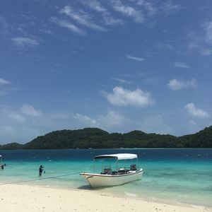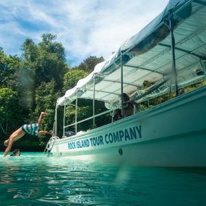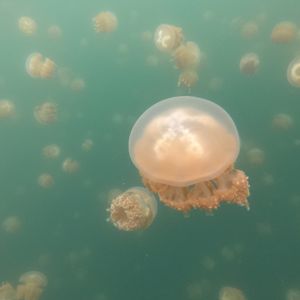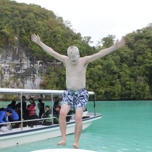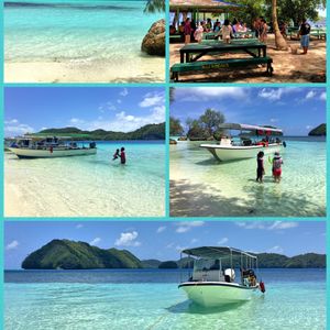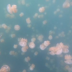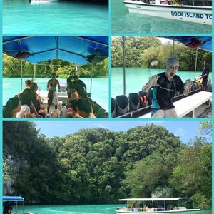 半日ツアーに参加を考えていたのですが思い切って一日ツアーに参加しました。ジェリーフィッシュはあいにくお天気が曇っていて濁って見えましたがそれでもたくさん見れたのでお天気が良いと本当にきれいだと思います。無人島でランチ後にスタッフが写真を撮りましょうか?と聞いてくれ、ジャンプをしている写真がうまく取れず、何度も何度も撮りなおしてくれました。帰りに遠回りをしてパラオの自然の良さをもっと見せてくれたように思います。帰国して皮膚をかなりやけどしたのでパラオの日差しの強さを思い知りました。日焼け止めを塗ったのですが本当に時間をおいてまた塗りなおさないといけない程なので日焼けガードはばっちりした方がいいと思います。