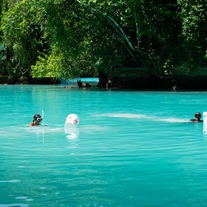 パラオのロックアイランドには、地中深くで海とつながるマリンレイクがいくつも存在しています。ジェリーフィッシュレイクはそんなマリンレイクのひとつ。海水と淡水が混ざった静かな湖には、無数のタコクラゲたちが生息しています。外的のいない環境で太陽を浴びて光合成をする不思議なクラゲは毒をもたず、触っても刺されないことが特徴のひとつ。環境の変化で一度いなくなってしまいましたが、最近になり彼らが戻ってきて、現在ではジェリーフィッシュレイクツアーも再開されるようになりました。湖を泳げば四方八方がクラゲだらけ。幻想的な雰囲気の漂うこの湖は、世界中の人々を魅了するパラオの有数のシュノーケリングスポットです。 【ここがおすすめ】 ・世界で唯一!光合成をする不思議な毒なしジェリーフィッシュに囲まれます。 ・服装は水着と短パン、サンダル、Tシャツ等の軽装でOK! ・傷つきやすいタコクラゲたち。シュノーケリングでもそっと泳ぎましょう。