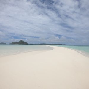 当日は曇り空でしたが、パラオのロングビーチが出る確率も今は40%と年々変わってきて、雨の降る事の方が多いのが現状です。