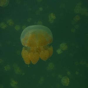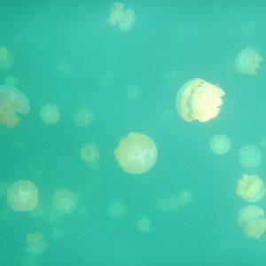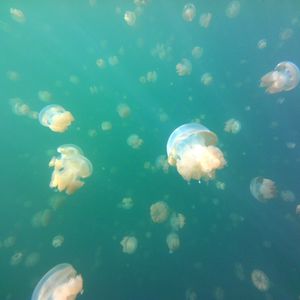 ジェリーフィッシュレイクはたどり着くまでに結構な山道を登って下ります。他の海と比べて、深緑で葉っぱやらなんやらがたくさん浮いてるので、汚そうな感じはしましたが、クラゲに無我夢中になれたので問題なかったです。幻想的なクラゲの写真がたくさん取れました!