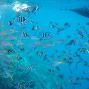 昼食後、船を泊めた辺りでシュノーケルをしましたが、アジ玉とコバンザメが見れ、とても感動しました!