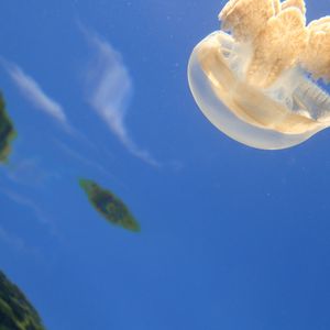 クラゲの下から水面を撮ると、空に浮かぶクラゲが撮れるとガイドさんが教えてくれました。