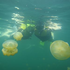 ジェリーフィッシュレイクでは、クラゲたちと泳ぐという不思議で貴重な体験ができた。
