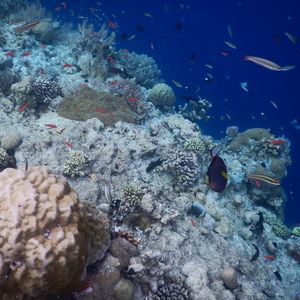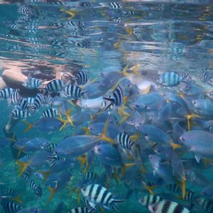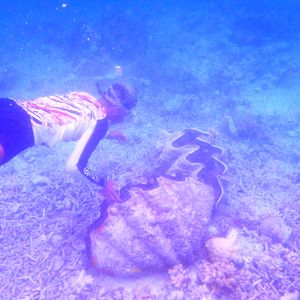 当日はかなり風の強い日でしたが、クラムシティとビッグドロップオフの手前で楽しみました!ラッキーな事にカメも見れて、大満足!小さなサメが足元まで来た時はドキッとしましたが…ガイドのアンディさんの大丈夫ですよー!の一言で安心しました。海の中はもう別世界のように色も違えば深さも違い、あーティーブブルーってこういう色のことなんだな、と思いました。とにかく神秘的でした。
